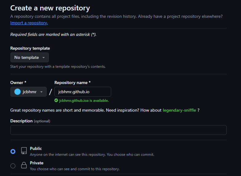 domain that's perfect for your basic website needs. Just create a new repository like jcbhmr.github.io